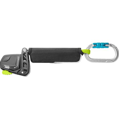 Nykäyksenvaimennin Edelrid Fuse putoamisen pysäyttävän köysitarraimen ja kokovaljaan rinta- tai selkäkiinnityspisteen väliin työkäyttöön. Raskaiden työkalujen/varusteiden kanssa toimimiseen sekä pelastustyöhön soveltuva malli, joka mahdollistaa paripelastamisen 50-220 kg kokonaiskuormalla. Erittäin kevyt rakenne. Pituus: 21 cm. Lisäsertifioitu 140 kg käyttäjille asti (ainoana kokonaisuutena markkinoilla, sekä kansainväliseen käyttöön.