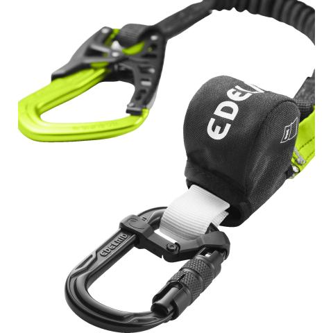 Nykäyksenvaimenninliitosköysi työkäyttöön. Erittäin kevyt ja kompakti I-malli, jossa venyvä stretch rakenne ja päässä kevyt, helppokäyttöinen ja käteen istuva Edelrid One Touch II alumiininen pikakiinnitin tilavalla portin avaumalla ja automaattilukituksella. Valjaiden pään automaattilukitteisessa lukkosulkurenkaassa asemointitanko, joka pitää sulkurenkaan aina oikeassa asennossa oikeaoppisesti kuormitettuna, ja helpottaa käsittelyä. Kokonaispituus 90 cm. Ihanteellinen esimerkiksi nostokorityöskentelyyn.