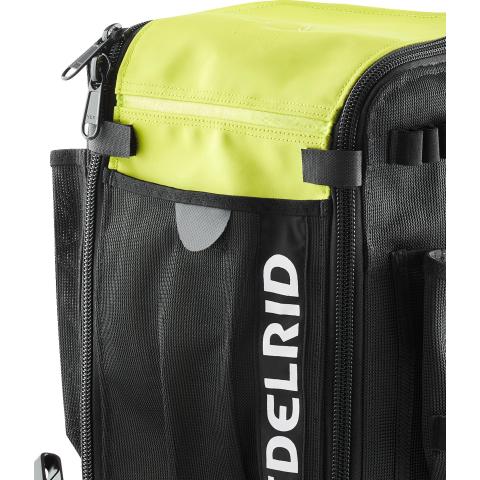 Leveä ja tilava suuaukko varustettu magneetilla, joka pitää aukon suljettuna myös esim. tuulisimmissa olosuhteissa, mutta silti helposti saavutettavana. Useita kiinnityslenkkejä ja taskuja. Pysyy itsestään pystyssä,jotta käyttö olisi helppoa.