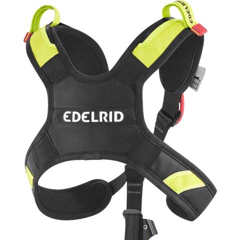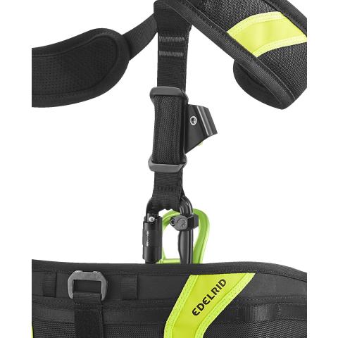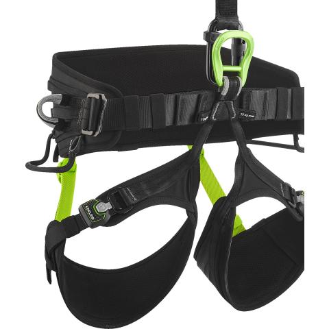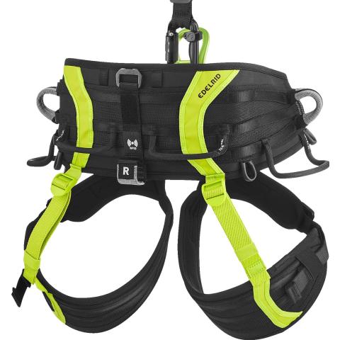 Erittäin litteän pikasolkirakenteen ansiota valjaita on miellyttävää käyttää myös istuessa ja esim. ajaessa. Pikalukitus on kolmetoiminen turvallisuuden maksimoimiseksi. Olkahihnoissa automaattisesti lukkiutuvat ja helposti säädettävät Easy Glider säätösoljet. 4 tilavaa kulutussuojattua varuste-/työkalulenkkiä max. 25 kg varusteille. Kuhunkin lenkkiin mahtuu max. 12 sulkurengasta. 4 pientä varuste-/työkalulenkkiä max. 50 kg varusteille. Kaksi kiinnityspistettä Edelrid SM-Clip 3R työkalukiinnittimille. Takana kiinnityspaikka Edelrid ensiapupakkaukselle.