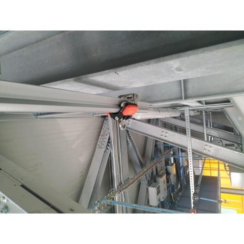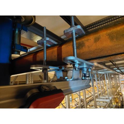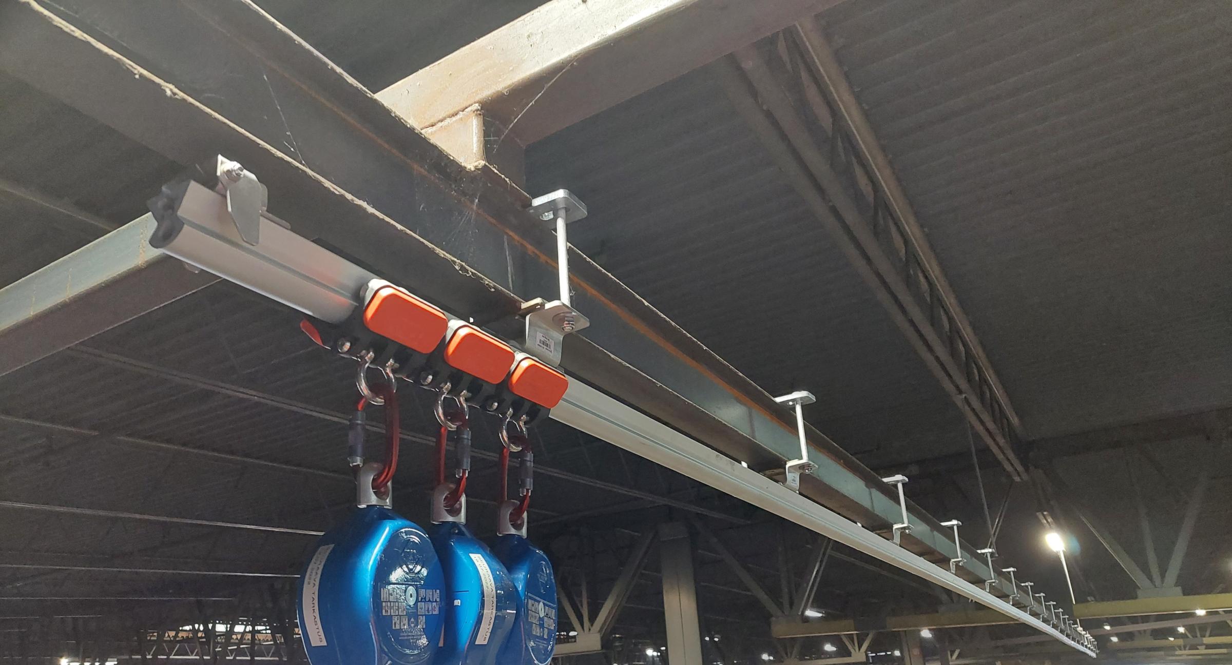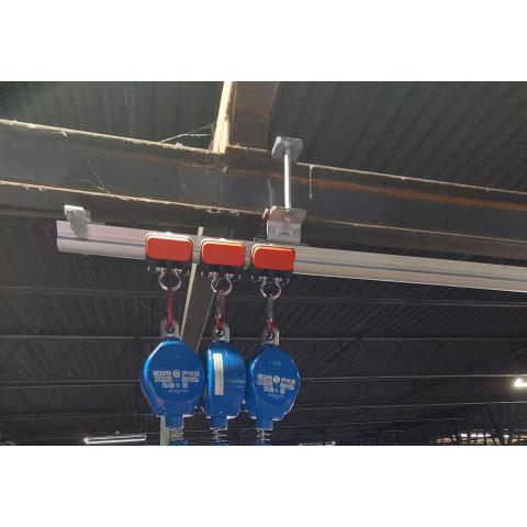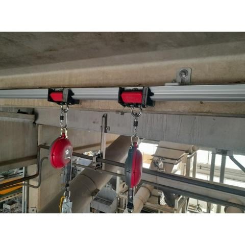 Henkilösuojainten kiinnityspisteenä toimiva kahdeksanpyöräinen liukuvaunu kulkee kiskossa esteettä asennuskorkeudesta, asennosta tai kulmien ohituksesta riippumatta. Kiskoon voidaan asettaa yksi tai useampi vaunu käyttötarkoituksesta riippuen.