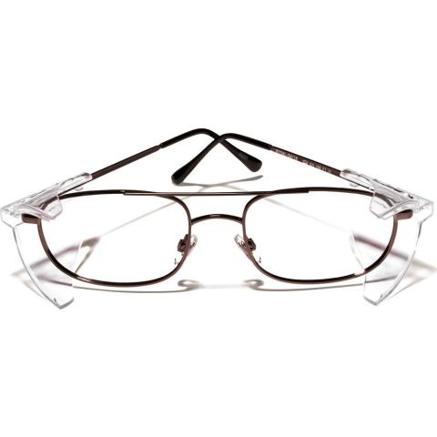 Ajattomat lentäjätyyliset suojalasikehykset reseptilinsseille työkäyttöön. Materiaali metallia. Integroidut sivusuojat niittikiinnityksellä. Tarjoaa lisäsuojaa myös ylhäältä ja alhaalta. Säädettävät nenätyynyt. Säädettävät sangat. Ihanteellinen malli myös suuren voimakkuuden linsseille.