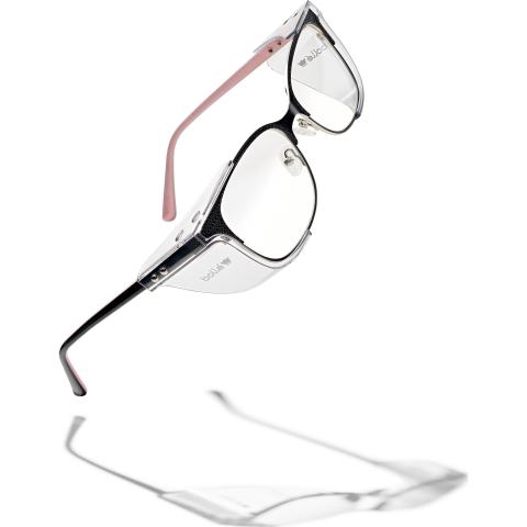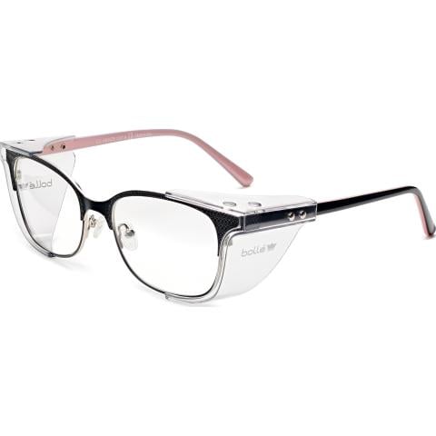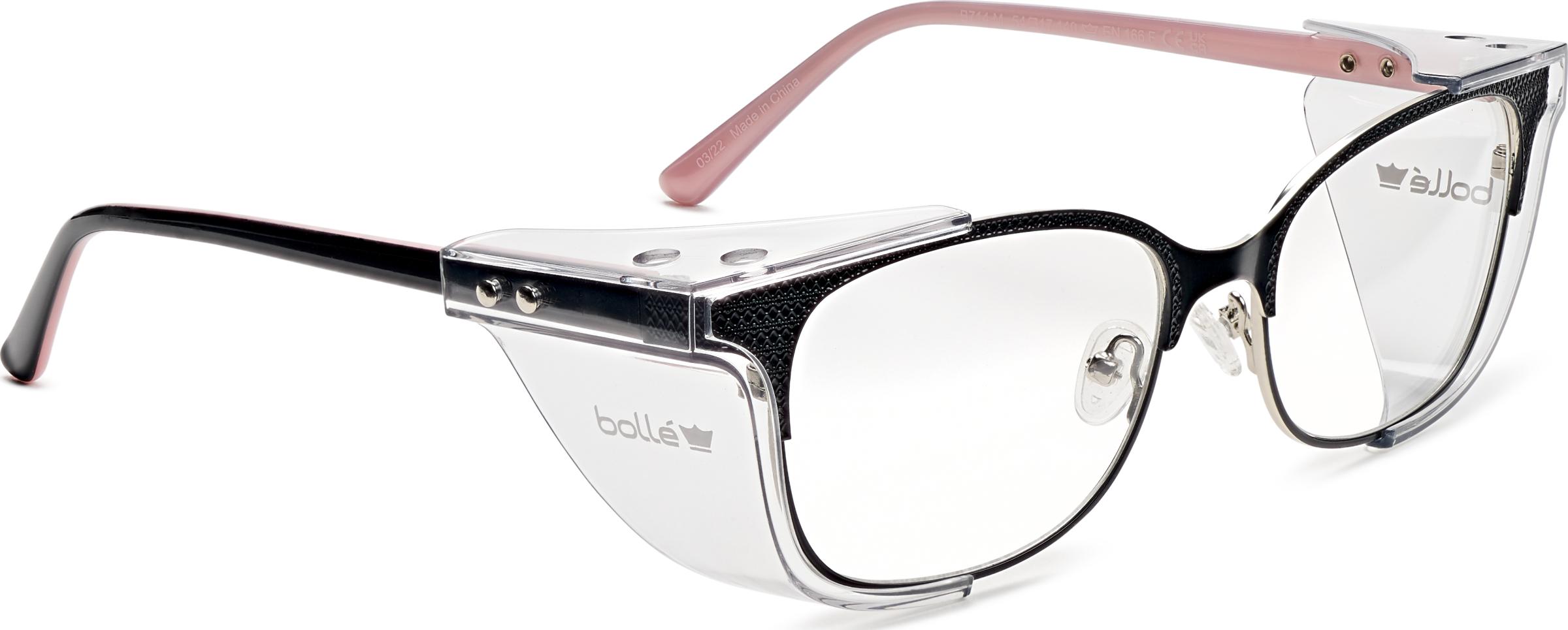 Tyylikkäät kaksoismateriaaliset suojalasikehykset reseptilinsseille työkäyttöön. Monipuolinen ja moderni naisten malli, joka mahdollistaa lukuisten eri tyyppisten linssien asentamisen mukaan lukien uusimmat linssi-innovaatiot. Kehys metallia ja sangat asetaattia metallilankaytimellä. Integroidut vaaleanharmaiksi sävytetyt sivusuojat niittikiinnityksellä; tarjoavat lisäsuojaa myös ylhäältä ja alhaalta. Säädettävät luistamattomat nenätyynyt. Ihanteellinen malli myös suuren voimakkuuden linsseille.