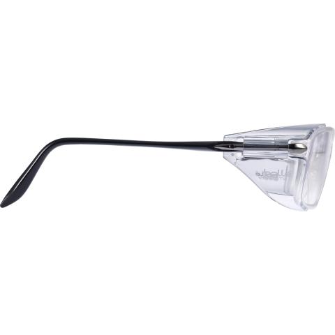 Selkeälinjaiset suojalasikehykset reseptilinsseille työkäyttöön. Integroidut niitatut sivusuojat joissa vain hyvin kevyt sävytys, jonka ansiosta näkökenttä pysyy laajana ja silti saadaan suojaa sivuilta tulevilta heijastuksilta. Vahvistettujen ohuiden sankojen säädettävyys on erinomainen.