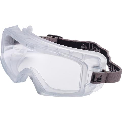 Monikäyttöinen tiivis PVC-suojamaski kirkkaalla linssillä työkäyttöön. Soveltuu käytettäväksi myös silmälasien päällä. PLATINUM huurtumisenestopinnoitettu luokka-N, ja naarmuuntumisenestopinnoitettu luokka-K linssi. Säädettävä pääpanta Nylonia.