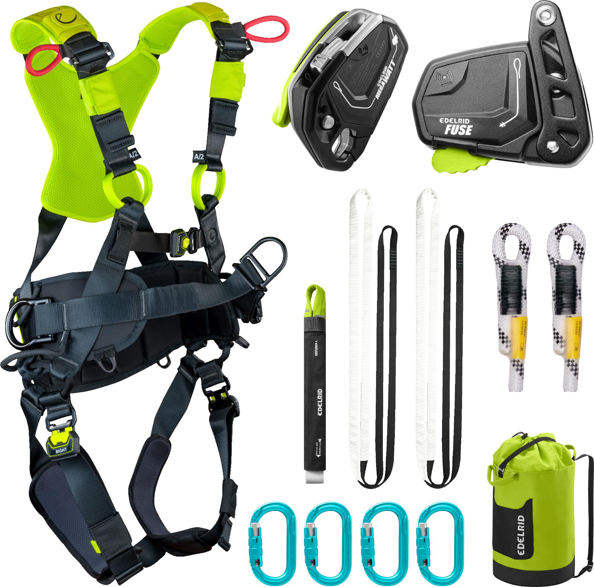 Valmis kaikenlaiset kattojyrkkyydet kattava putoamissuojainpakkaus tehokkaaseen työskentelyyn putoamisvaarallisissa olosuhteissa. Sisältää Edelridin kaksi suosituinta tuotetta: Fuse köysitarraimen sekä Megawatt laskeutumislaitteen. Suunniteltu täyttämään esimerkiksi pellittäjien, kattoasentajien, aurinkopaneeliasentajien, nuohoojien jne. kokonaisvaltaiset toiveet ja tarpeet turvallisesta ja helposta toimimisesta katoilla. Soveltuu myös muihin kattotöihin, lumenpudottamiseen ym. korkeanpaikantyöskentelyyn. Lisäsertifioitu 140 kg käyttäjille asti.
