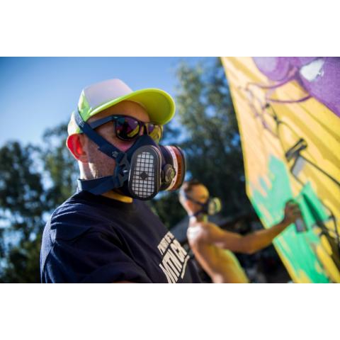 Toimitus sisältää: Puolinaamari, 2 x A1P3 R D Low Profile suodatinelementti, päähihnasto.