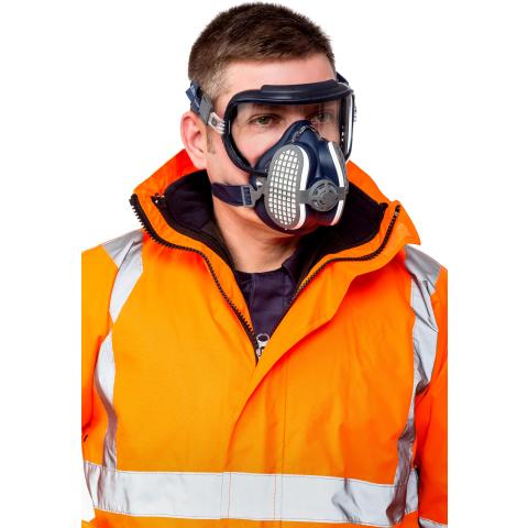 Käyttövalmis puolinaamarimallinen hengityksensuojain integroidulla tuuletetulla silmiensuojaimella ja vaihdettavalla P3 R D hiukkassuodatinparilla. GVS Low Profile -sarjan malli, joka on yksi markkinoiden pienikokoisimpia, kevyimpiä ja tehokkaimpia puolinaamareita. Tarjoaa laajan näkökentän, ja muotoilun ansiosta yhteensopivuus on erinomainen muiden suojainten, kuten kokokasvosuojainten, kuulosuojainten ja työkypärien kanssa. Polykarbonaattilinssissä sisäpuolella tehokas huurtumisenestopinnoite, ja ulkopuolella naarmuuntumisenestopinnoite, joka ylittää EN166 standardin vaatimukset 60 %:lla. Optiikkaluokka 1 linssi: Suunniteltu pitkäkestoiseen yhtäjaksoiseen käyttöön. Tiiveystestit suoritettu kokonaisuuden tiiveydelle. Saatavilla kaksi kokoa: S-M ja M-L.
