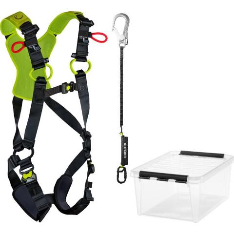 Käyttövalmiiksi kasattu putoamissuojainratkaisu työskentelyyn henkilönostimissa ja muissa vastaavissa olosuhteissa. Osat on valittu siten että ne ovat mahdollisimman helppokäyttöisiä ja virhekäytön mahdollisuus on pyritty minimoimaan. Testattu Sharp Edge -mukaisesti terävän (säde=0,5 mm) reunan yli. Lisäsertifioitu 140 kg käyttäjille asti.