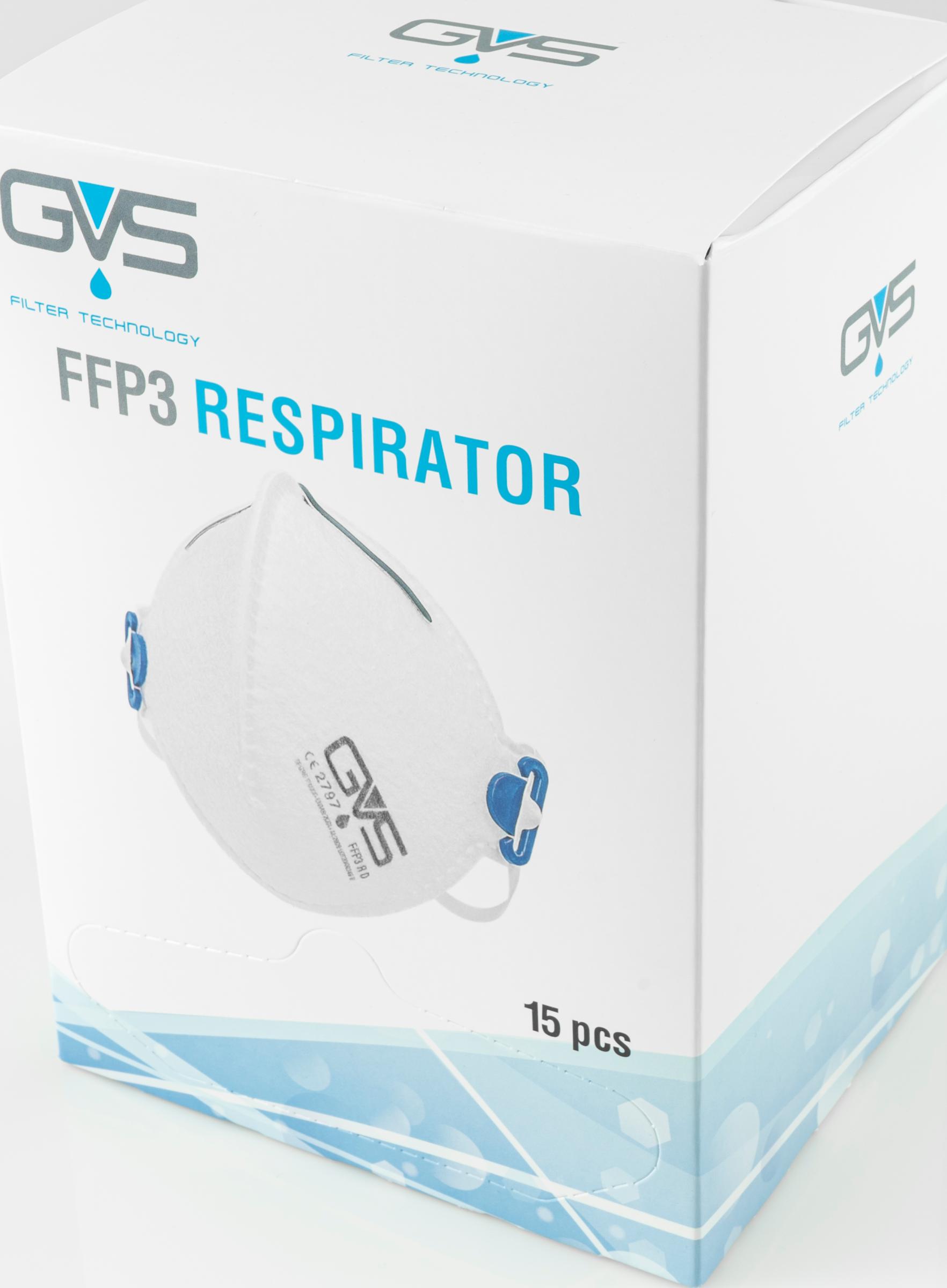 Pakkaus, jossa 15 kpl hygieenisiin yksittäispusseihin pakattuja GVS Segre Folded FFP3 R D hengityssuojaimia. Laatikko voidaan avata päältä tai alareunasta dispenser-jakolaatikoksi. Suositeltava valinta mm. teollisuuden, rakennusalan sekä terveydenhuollon ammattilaisten tarpeisiin. Sertifioitu myös lääkinnälliseksi laitteeksi.