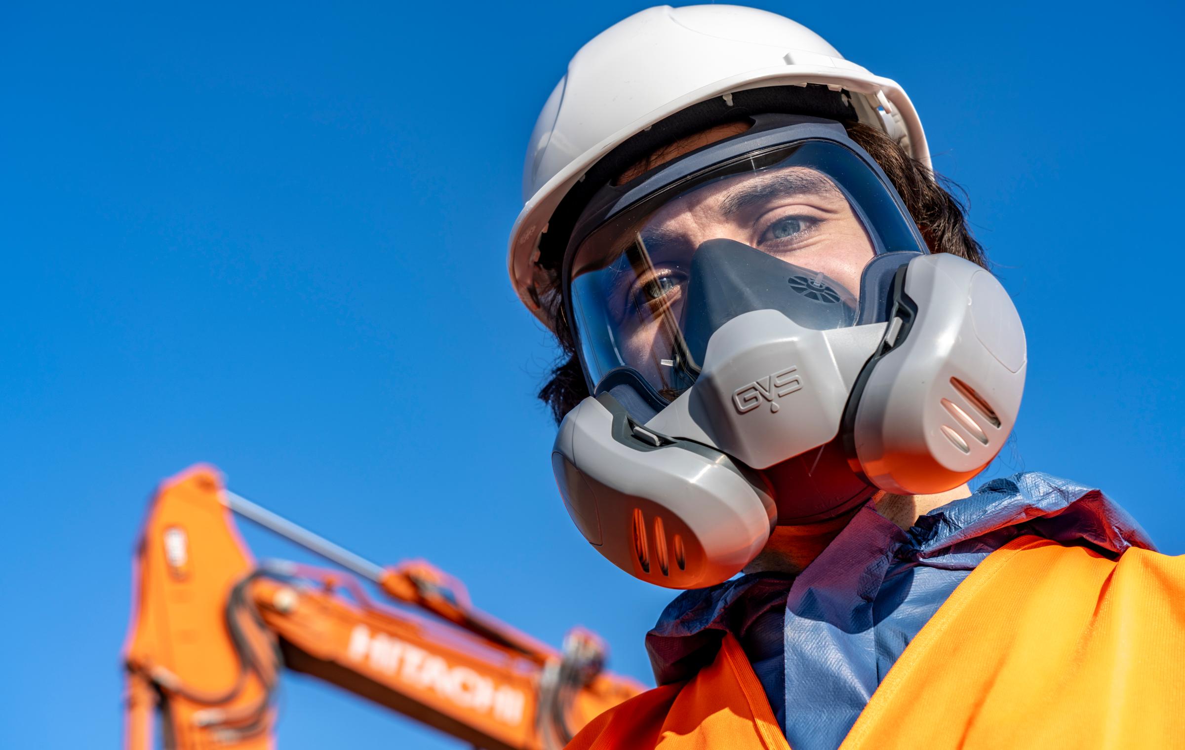Kevyt kokokasvomallinen hengityksensuojain tiiviillä silmiensuojaimella ja vaihdettavalla A2P3 R D yhdistelmäsuodatinparilla: Hiukkassuodatus ja kaasusuodatus. Poikkeuksellisen leveä näkökenttä.