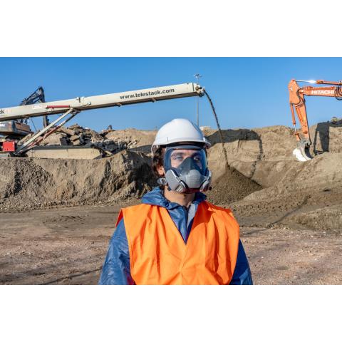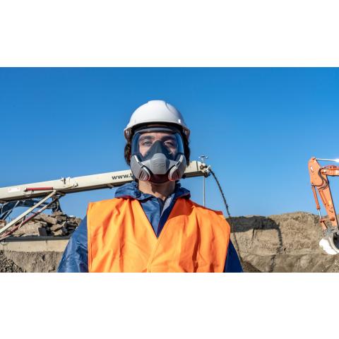Käyttövalmiina toimitettava kevyt kokokasvomallinen hengityksensuojain tiiviillä silmiensuojaimella ja vaihdettavalla P3 R D hiukkassuodatinparilla. Poikkeuksellisen leveä näkökenttä.