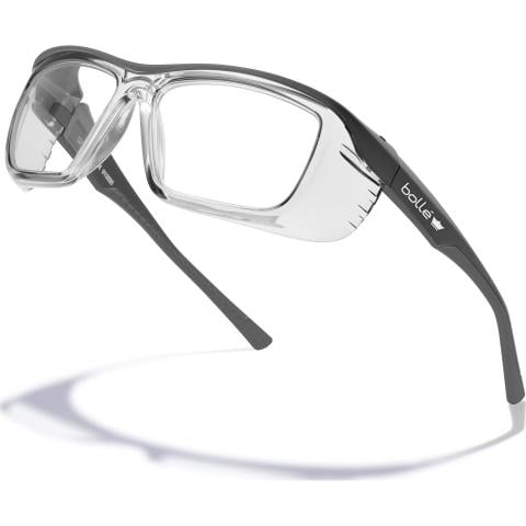 Suojalasikehykset reseptilinsseille työkäyttöön. Laajan näkökentän tarjoava ja kattavasti suojaava malli, joka tarjoaa lisäsuojaa myös ylhäältä ja alhaalta tuleville uhkille. Erittäin kevyesti sävytetyt sivusuojat integroitu osaksi kehyksen reunaa. Kokonaan ruuvivapaa rakenne. Sporttinen design.