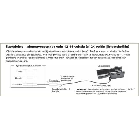 - Hyväksyy 12–14 voltin DC tasavirran (ei saa käyttää 24-voltin järjestelmissä)