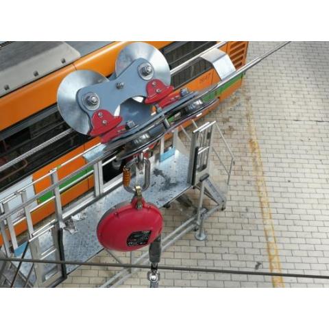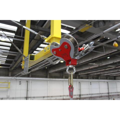 Henkilösuojainten kiinnityspisteenä toimiva liukuvaunu liikkuu erittäin herkästi, myös välivarmistuspisteiden ohi.
