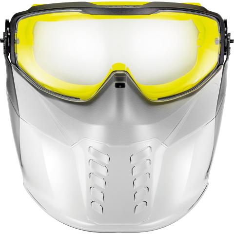 Suojaa tehokkaasti kasvot keskienergisiltä mekaanisilta riskeiltä, myös äärimmäisissä lämpötiloissa. Kokonaisuudesta muodostuu poikkeuksellisen kevyt koko kasvot kattavammin suojaava suojain. Tarjoaa erinomaisen suojan myös sivuilta tulevilta uhkilta.