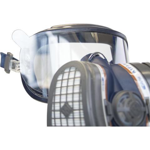 HUOM! Filmiä ei liimata suojamaskin linssiin, vaan se on "irrallaan" maskin linssin edessä. Tästä johtuen tämä ei ole välttämättä soveltuva sellaisiin työtehtäviin, missä likaa voi lentää helposti ylä- tai alasuunnasta linssin ja kalvon väliin.