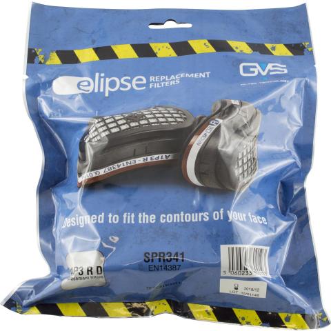 Vaihtosuodatinpari GVS Low Profile -sarjan Elipse SPR338 ja SPR503, sekä Elipse Integra SPR444 ja SPR401 puolinaamarimallisille hengityssuojaimille. Yhdistelmäsuodatin: Hiukkas- ja kaasusuodatinluokitus A1P3 R D. Vettä hylkivä rakenne ja uudelleenkäytettävä. GVS yhdistelmäsuodattimissa on venttiili integroituna suoraan suodattimeen, jonka ansiosta aikaa säästyy huomattavasti puolinaamarin puhdistamisessa, rakenne on tavanomaisia suodattimia hygieenisempi ja varaosien tarve ja niiden ylläpitoon kuluva ylimääräinen aika on eliminoitu kokonaan pois. Tämän modernin rakenteen ansiosta kokonaisuus on erittäin turvallinen ja puolinaamarin elinkaaren aikana todelliset kustannussäästöt voivat olla huomattavia.
