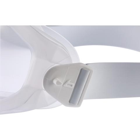 Autoklaavipuhdistuksenkin kestävä naamiomallinen suojamaski kirkkaalla PLATINUM-pinnoitetulla polykarbonaattilinssillä. Erinomainen kestävyys autoklaavisterilisaatiolle 121 °C:ssa 20 min ajan. Kehyksen yläreunassa epäsuorat tuuletusaukot ja alareuna tiivis. Soveltuu myös puolinaamarimallisten hengitystensuojainten kanssa käytettäväksi. Tarjoaa poikkeuksellisen laajan katselukentän ja korkealuokkaisen optiikan sekä pehmeän tiivisteen ansiosta erinomaisen käyttömukavuuden. Soveltuu käytettäväksi myös silmälasien päällä, ja kehyksessä on läpivientihahlot omien silmälasien sangoille soveltuen ohimoiden kohdalla jopa 12 mm korkeille sangoille. Ihanteellinen suojamaski puhdastiloihin, laboratiorioihin, terveydenhuoltoon jne. olosuhteisiin, missä toistuva puhdistaminen tehdään esim. höyrypuhdistuksena paineastiassa.