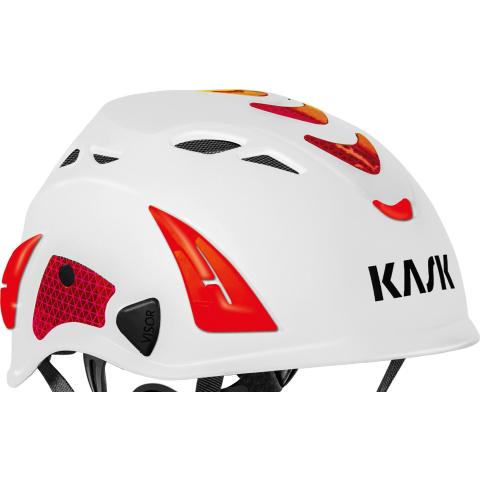Punainen heijastintarrasarja Kask Superplasma työkypäriin. Vastaavankaltasiet, jotka HI VIZ kypärämalleissa on vakiona kypärissä kiinni. Parantaa kypärän ja käyttäjän havaittavuutta sekä turvallisuutta. Arkissa muotoillut tarrat kypärän kaikille puolille, joista muodostuu kattavasti kaikkiin suuntiin näkyvä heijastuvuus.
