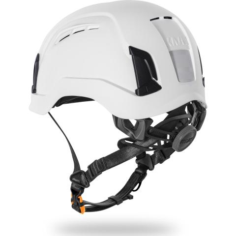 Hihnasto pitää kypärän päässä vaikeissakin työasennoissa. Hihnaston laajojen säätöjen ansiosta hyvä yhteensopivuus kuulonsuojainten kanssa. Leuan alueella eco-nahkainen, hypoallergeeninen ja pestävä suojus, joka tarjoaa poikkeuksellista käyttömukavuutta, ja ehkäisee ihoärsytystä. Pään muotojen mukaan mukautuva säätö, jonka ansiosta pääpanta muotoutuu niskan alueella täydellisesti pään muotojen mukaan. Soveltuu 53-63 cm pään ympärysmitalle, ja mitoitus säädettävissä lisäksi korkeuden ja niskaosan kulman osalta. Leukahihnassa Ring To Hook -lenkki, jonka avulla kypärän voi kiinnittää työvaatetukseen tai varustereppuun, kun se ei ole päässä. Pehmusteet DRY+ materiaalia, jossa antibakteerinen hopeaionikäsittely pitää kypärän raikkaampana. Siirtää tehokkaasti kosteutta tarjoten mukavuutta koko työpäivän ajaksi, ja kuivuu erittäin nopeasti.