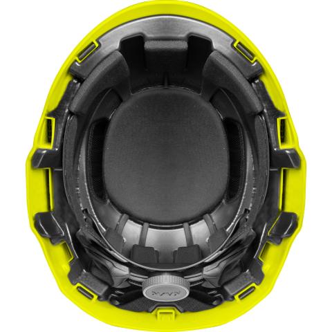Hihnasto pitää kypärän päässä vaikeissakin työasennoissa. Hihnaston laajojen säätöjen ansiosta hyvä yhteensopivuus kuulonsuojainten kanssa. Pään muotojen mukaan mukautuva Adaptive Fit -säätö, jonka ansiosta pääpanta muotoutuu niskan alueella täydellisesti pään muotojen mukaan. Soveltuu 53-63 cm pään ympärysmitalle, ja mitoitus säädettävissä lisäksi korkeuden ja niskaosan kulman osalta. Leukahihnassa Ring To Hook -lenkki, jonka avulla kypärän voi kiinnittää pelastusasuun tai varustereppuun, kun se ei ole päässä. Leukahihnan materiaali paloturvallinen akryyli, joka ei sula ja on itsestään sammuva ilman liekkikosketusta.
