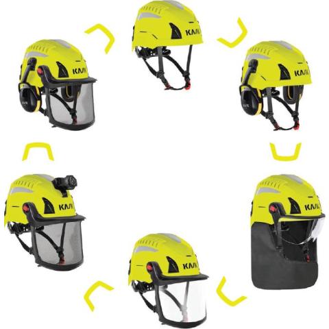 Kypärään voidaan kiinnittää useita erilaisia silmien- ja kasvojensuojaimia nopeasti vain napsauttamalla EasyClick pikakiinnitysten ansiosta. Edessä kiinnityskolo nimikyltin tai otsavalaisimen kiinnittämiseksi ilman pantaa. Sivuilla integroidut helppokäyttöiset kiinnikkeet naamiomallisen silmiensuojaimen tai otsavalaisimen kiinnittämiseksi tavalla, joka ehkäisee tarkoituksettoman pudottamisen. Taaemmissa kiinnikkeissä lisäura narulla varustettujen korvatulppien (esim. Sordin) kuljettamiseksi helposti saatavilla ja käyttövalmiina. Sivuilla lovet kuppikuulosuojaimille tai käsivalaisinkiinnikkeelle. Takaosassa sisäpuolella kiinnityspisteet erilaisille niskasuojille, joiden valikoimasta löytyy myös palosuojattu malli.