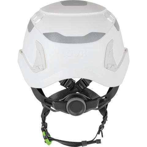Advanced Light hihnasto pitää kypärän päässä vaikeissakin työasennoissa. Hihnaston laajojen 5 eri säädön ansiosta hyvä yhteensopivuus kuppikuulonsuojainten kanssa. Vihreä leukahihnan soljen väri ilmoittaa, että tämä malli on varustettu EN12492 standardin mukaisella leukahihnalla. Leukahihnassa Ring To Hook -lenkki, jonka avulla kypärän voi kiinnittää työvaatetukseen tai varustereppuun, kun se ei ole päässä.