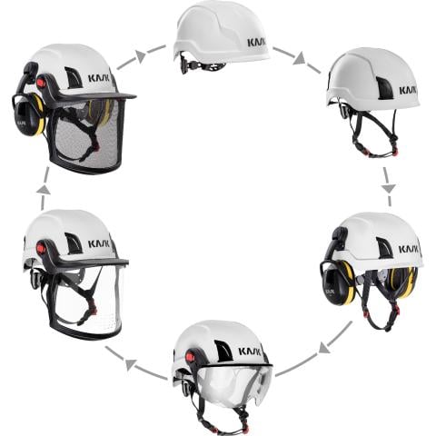 Valmis setti, jossa Kask Zen Visor kirkas silmiensuojain (WVI00038-500), sekä Zen Visor Adapters EasyClick pikakiinnikepari (WAC00009-) silmiensuojaimelle. Soveltuu kaikille Kask Zenith X ja Primero -sarjojen työkypärille.