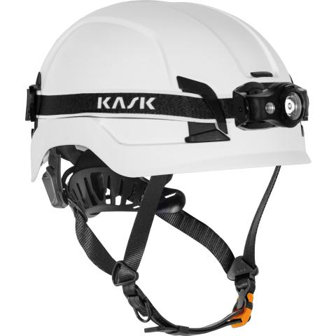 KL-1 otsavalaisinklipsi työkypärän etuosaan (WAC00064-). Tämän avulla valaisin saadaan helposti kiinnitettyä työkypärän etukoloon, ja mahdollistetaan samaan myös kypärään kiinnitetyn visiirin sujuva käyttäminen.