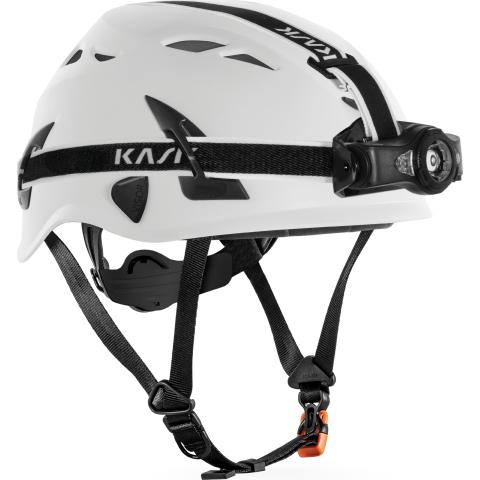 KL-2 otsavalaisinklipsi työkypärään (WAC00065-). Tämän avulla valaisin saadaan helposti kiinnitettyä työkypärän etukoloon, ja mahdollistetaan samaan myös kypärään kiinnitetyn visiirin sujuva käyttäminen.