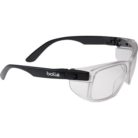 Suurikokoiseenkin päähän istuvat suojalasikehykset reseptilinsseille työkäyttöön. Sangoissa ylä- ja alasuunnassa nivelletyt saranat, jotka mahdollistavat linssiosan kallistuskulman säätämisen pään muotojen mukaisesti, jolloin saavutetaan ihanteellinen istuvuus ja suojaavuus. Sivusuojat integroitu linssikehyksiin. Suojat eivät taitu sankojen mukana. Tarjoaa kattavasti suojaa sivuilta ja ylhäältä tulevilta uhkilta.