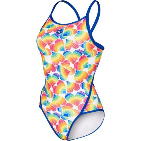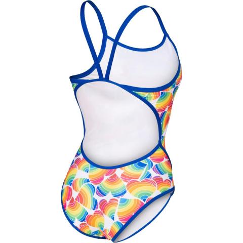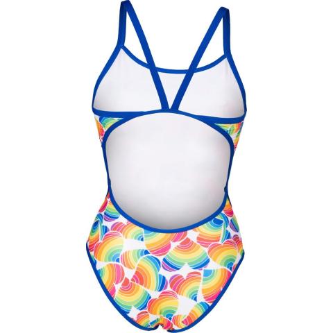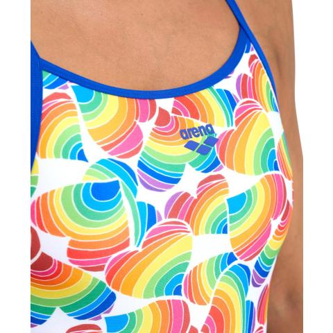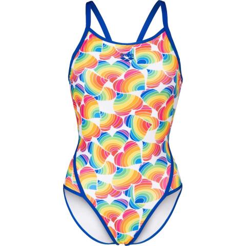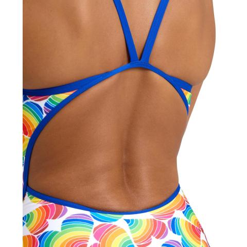 Performance-malliston uimapuku, sopii niin kilpauimareille kuin harrastajillekin. Avoin selkäosa, ohuet olkaimet ja korkealle leikatut jalantiet antavat tilaa liikkeelle, parantavat vesituntumaa ja vähentävät veden vastusta. Puku on kokonaan vuorattu. Raikas sateenkaaripainatus on osa Arenan Pride-mallistoa.