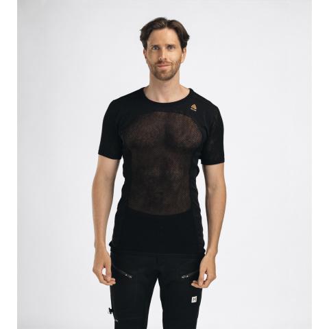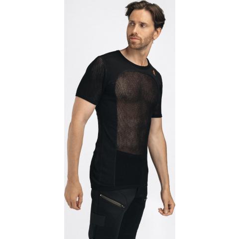 Miesten ainutlaatuinen lyhythihainen verkkoaluspaita. Lämpötilan hallinnan ja mukavuuden kannalta luonnonkuitujen yhdistäminen tekokuituihin on ylivoimaisen hyvä ratkaisu. WoolNet-rakenne, jossa käytetään pehmeää merinovillaa, on aina sopivan lämpöinen ja erittäin hyvin hengittävä. Kuitu imee jopa 30 % kosteutta itseensä, ennen kuin se alkaa tuntua märältä.