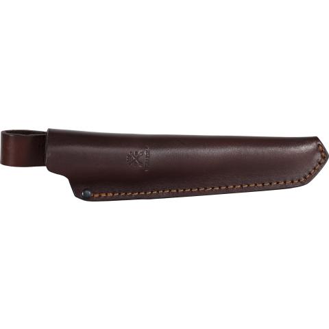 Toimitetaan nahkatupen kanssa. Tupen läppä on avattavissa myös käsineet kädessä. Tupen läppä estää puukon tarkoituksettoman pudottamisen, mutta pitää sen silti heti saatavissa hätätilanteita varten.