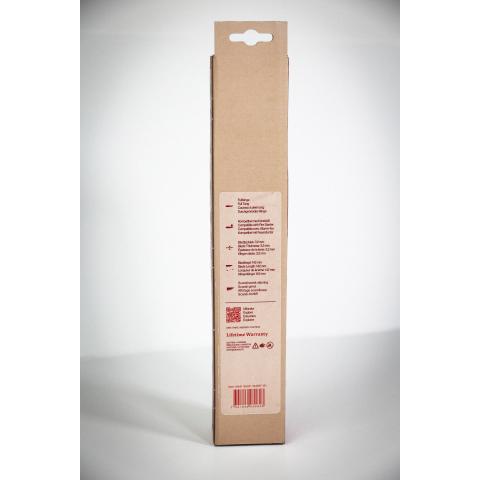 Toimitetaan piikkiin ripustettavasssa retail -lahjapakkauksessa, jonka mitat: 32,5 cm x 5,7 cm x 4,5 cm. Pakkaukseen kuuluu: Puukko ja nahkatuppi.