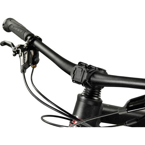 Kiiinnike, jolla Lupine Frontclick valaisimen (Esim PentaPro, Neo, Piko, Blika) valaisimen rungon saa kiinni polkupyörän ohjaustankoon. Ei vaadi paljon tilaa ohjaustangosta. Kiinnike on valmistettu muovista ja ruuvit ruostumattomasta teräksestä.