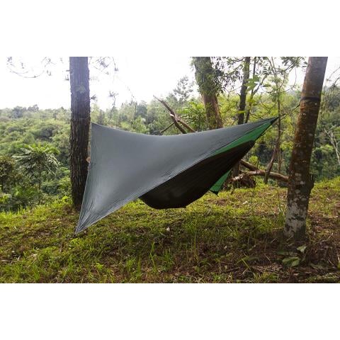 Ultrakevyt tarppi riippumattojen päällä käytettäväksi. Kulkee helposti mukana pienessä kuljetuspussissaan, kestää kovaakin keliä ja tarjoaa luotettavasti suojaa sateelta, yökasteelta ja auringonpaisteelta. Diagonaali ja reilun kokoinen, jotta riippumatto pysyy kuivana sateessa tai käyttäjä varjossa aurinkoisessa kelissä. Muodostaa täydellisen yhdistelmän Ticket To The Moon Lightest Hammockin kanssa yhdessä käytettynä. Toimitetaan puolikuun muotoisessa MoonTarp-pakkauksessa. Grammanviilaajan unelma, paino vain 412 g.