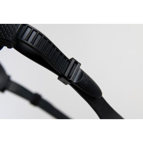- Silikonista valmistettu, vahva, takaosasta 2-osainen päähihna. Pikasäätö molemmin puolin lasia