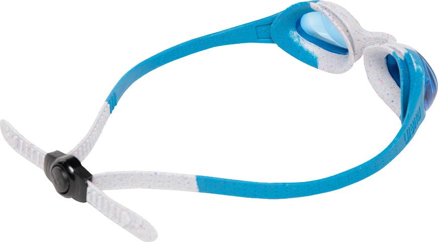 Uimalasit 2-6 vuotiaille sinisillä linsseillä. Turvalliset Uv-suojalinssit ja pehmeät hypoallergiset silikonitiivisteet. Mukavat käyttää yksiosaisen hihnan ja takana olevan säätösoljen ansiosta. Nenäsilta mukautuu käyttäjän kasvoihin. Hyvä istuvuus estää veden pääsyn silmiin. Huurtumisen estävä käsittely lasipinnoilla. PVC-vapaa. 33 % kierrätetty silikoni, 15 % kierrätetty polykarbonaatti.