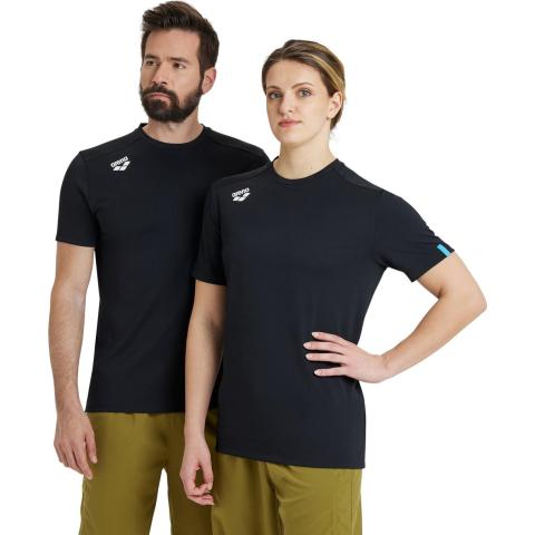 Arena Team Unisex Solid miesten ja naisten T-paita. Valmistettu arki- tai urheilukäyttöön nopeasti kuivuvasta MaxDry Ecosta, polyesteristä, joka on valmistettu kierrätetyistä PET-pulloista. Viimeistelty kontrastivärisellä arenan logolla.