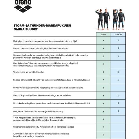 Thunder märkäpuku on kansainvälisten kilpailustandardien mukainen. Puku on World Aquatics, World Triathlon (ITU), Ironman ja USAT -hyväksytty.