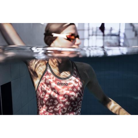 W Carbon Air2 Open Back -kilpauimapuku, Leopard Skin -mallistoa. Kuosin inspiraationa hurja ja armoton saalistaja, jonka mielentilassa on yllättävän paljon samaa sinnikkään ja voitontahtoisen uimarin kanssa. Rajoitettu erä.
