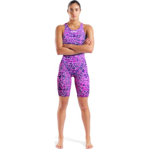 W St Next Le Open Back, naisten avoselkäinen kilpauimapuku kierrätysmateriaalista, Snakeskin Limited Edition -mallistoa.
