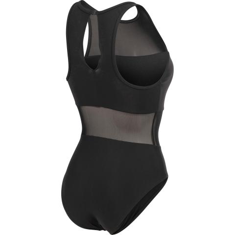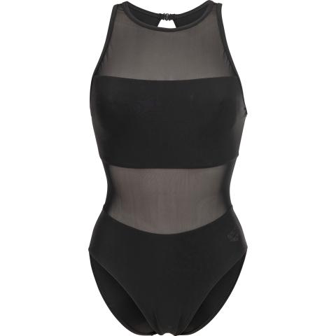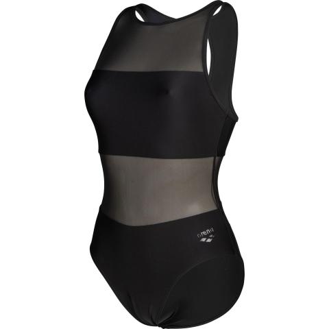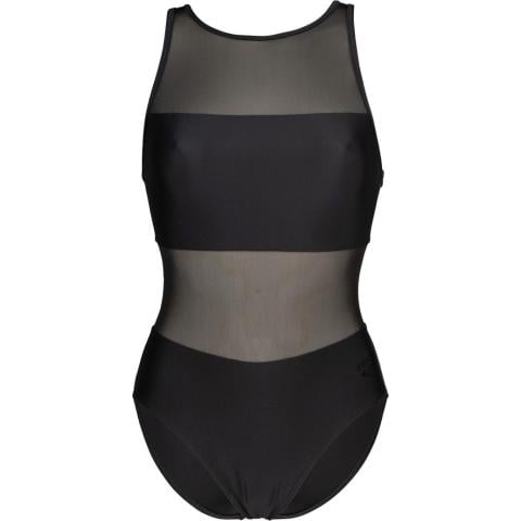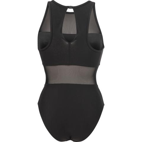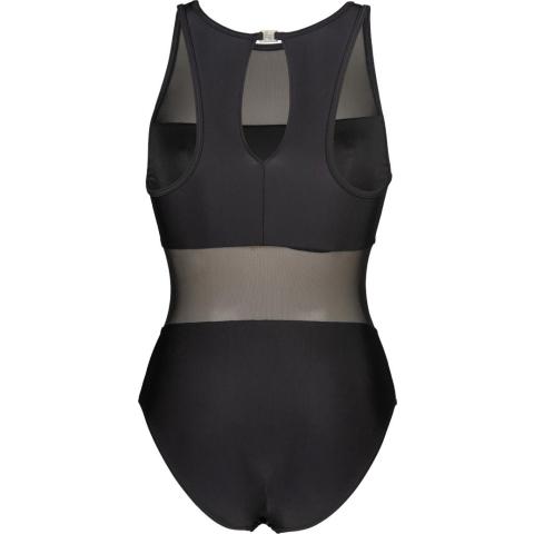 Hyvin istuva uimapuku naisellisilla, läpikuultavilla verkko-osioilla. Sopii niin altaalle kuin rannallekin. Korkea kaula-aukko sekä korkea selkäosa pitävät puvun hyvin paikoillaan. Niskassa solkikiinnitys. Vuorattu etuosa verkko-osioita lukuun ottamatta.