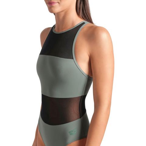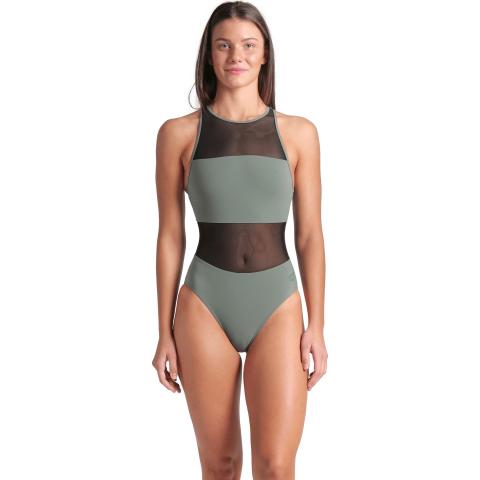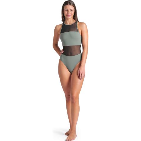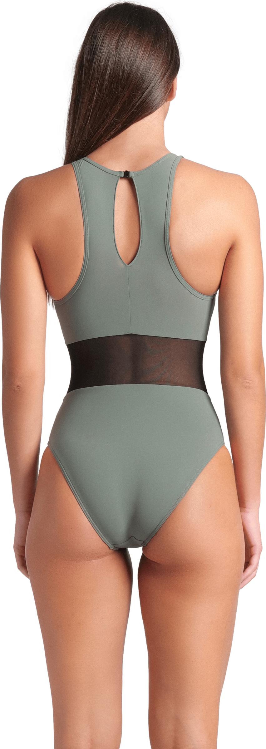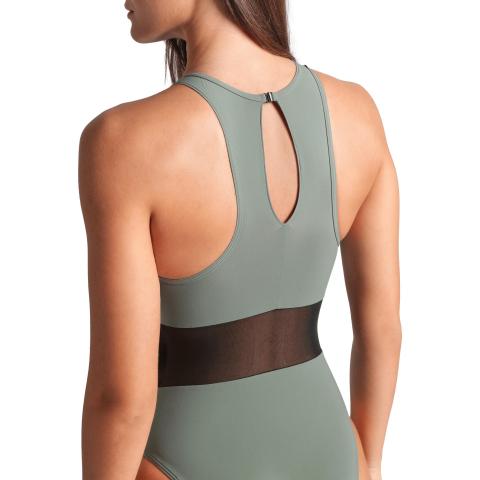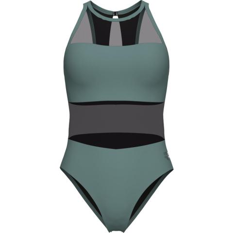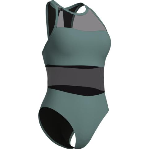 Hyvin istuva uimapuku naisellisilla, läpikuultavilla verkko-osioilla. Sopii niin altaalle kuin rannallekin. Korkea kaula-aukko sekä korkea selkäosa pitävät puvun hyvin paikoillaan. Niskassa solkikiinnitys. Vuorattu etuosa verkko-osioita lukuun ottamatta.