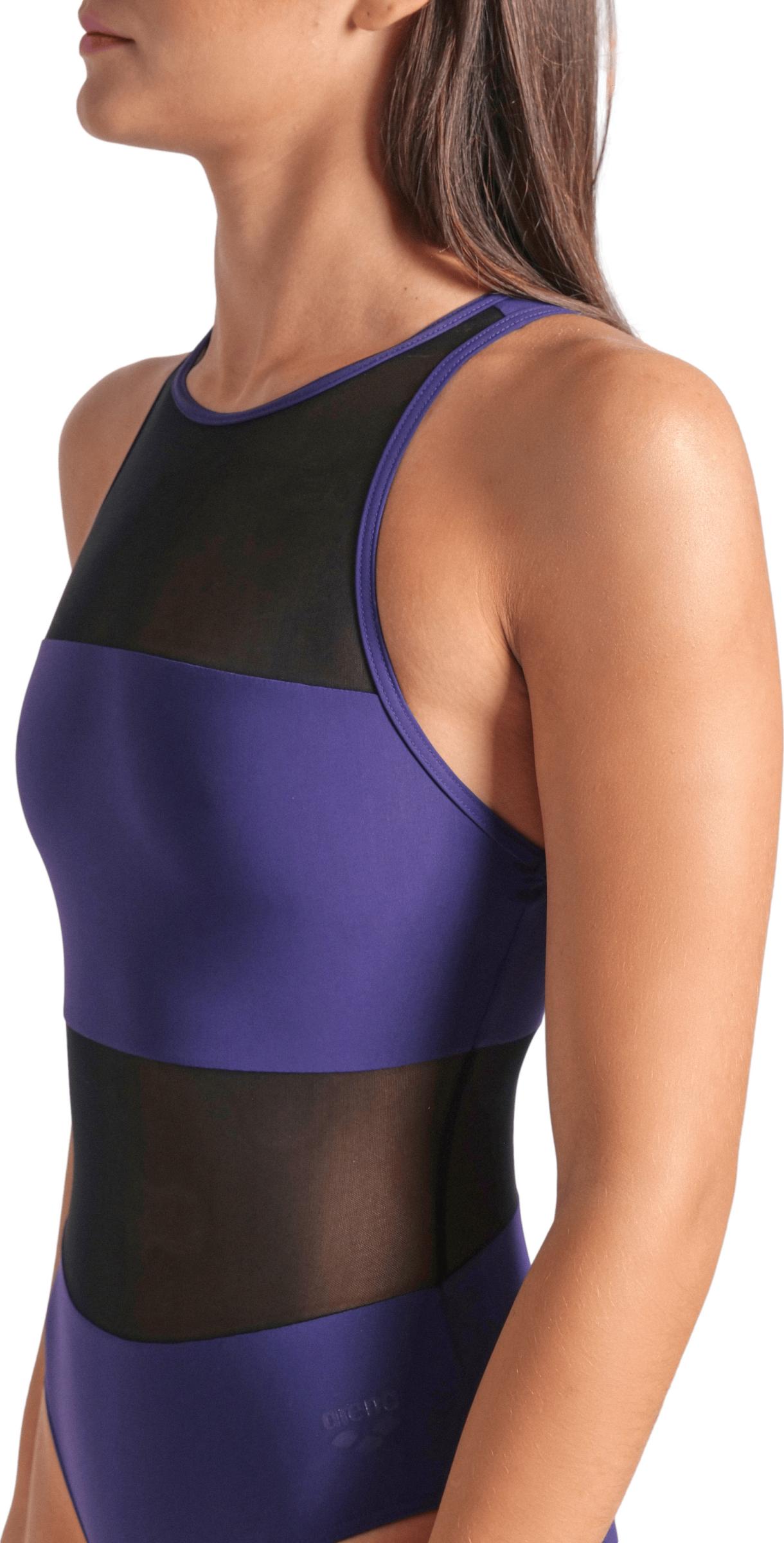 Hyvin istuva uimapuku naisellisilla, läpikuultavilla verkko-osioilla. Sopii niin altaalle kuin rannallekin. Korkea kaula-aukko sekä korkea selkäosa pitävät puvun hyvin paikoillaan. Niskassa solkikiinnitys. Vuorattu etuosa verkko-osioita lukuun ottamatta.