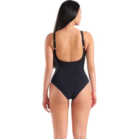 Sirot, säädettävät olkaimet sekä umpinainen selkäosa parantaa puvun istuvuutta. Olkaimet voi kiinnittää myös takaa ristiin. Pehmeä, kaksinkertainen liiviosa sekä leveä kuminauha rintojen alla tukevat povea. Uimapuvussa on kevyesti vatsaa litistävä neulos. Lahkeensuu on toteutettu ilman hiertävää neulosta.