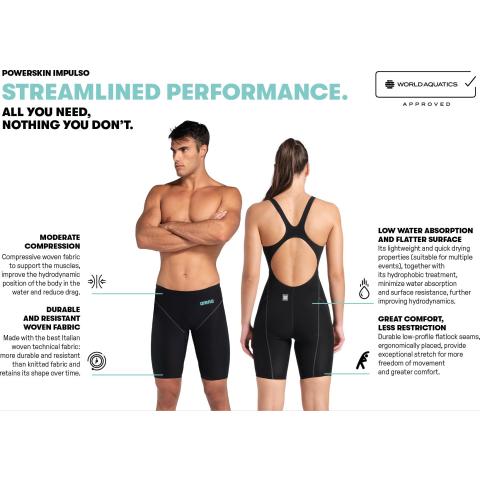 Impulso-kilpauimapuvussa yhdistyy kilpailukykyinen hintataso sekä hyvä suorituskyky. Uutuus, joka tuo huipputason teknologian jokaisen uimarin saataville. Kevyt ja nopeasti kuivuva puku sopii useamman startin kisapäiviin.