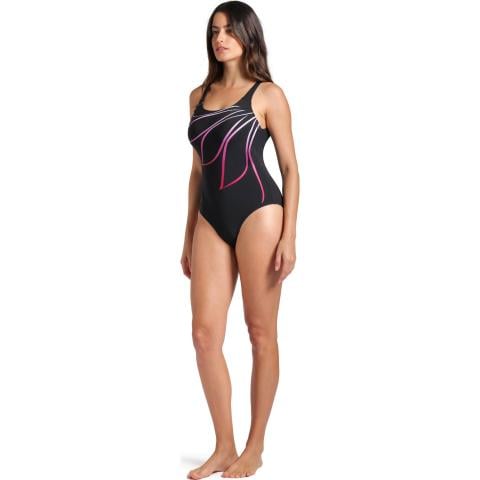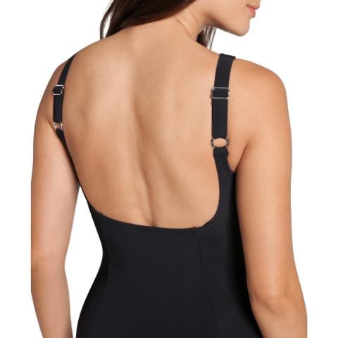 Pehmeät, muotoillut kupit sekä leveä kuminauha rintojen alla tukevat povea. Säädettävät olkaimet parantavat puvun istuvuutta. Tukeva, neliönmallinen selkäosa. Uimapuvussa on kevyesti vatsaa litistävä kangas.